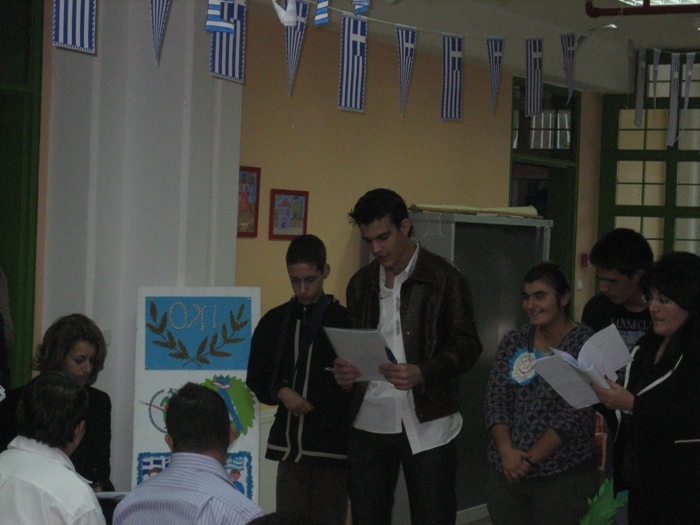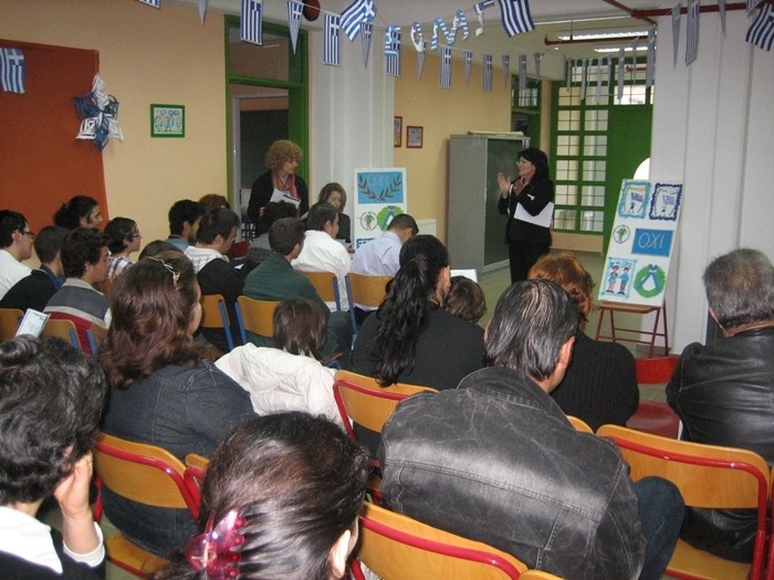 Την Τετάρτη 27 Οκτωβρίου σε μια όμορφη εορταστική ατμόσφαιρα στο Εργαστήριο Ειδικής Επαγγελματικής Εκπαίδευσης και Κατάρτισης, το οποίο στεγάζεται στον Καραβά, πραγματοποιήθηκε η καθιερωμένη σχολική γιορτή για την επέτειο του «ΟΧΙ», την οποία είχαν ετοιμάσει οι μαθητές μαζί με τους δασκάλους τους.