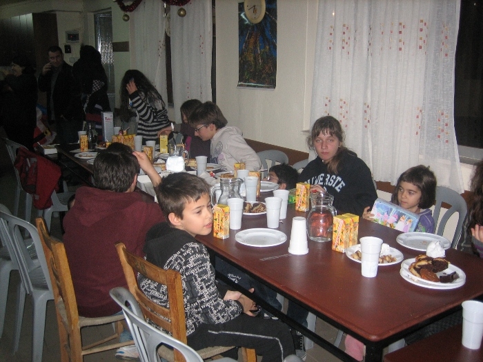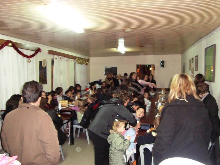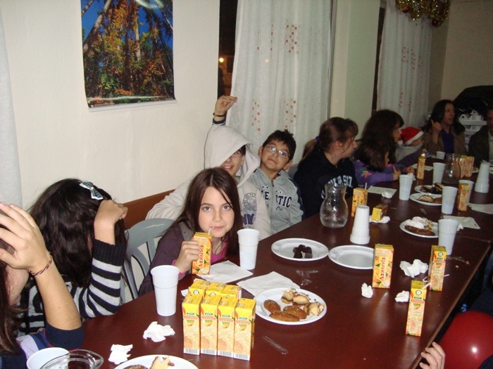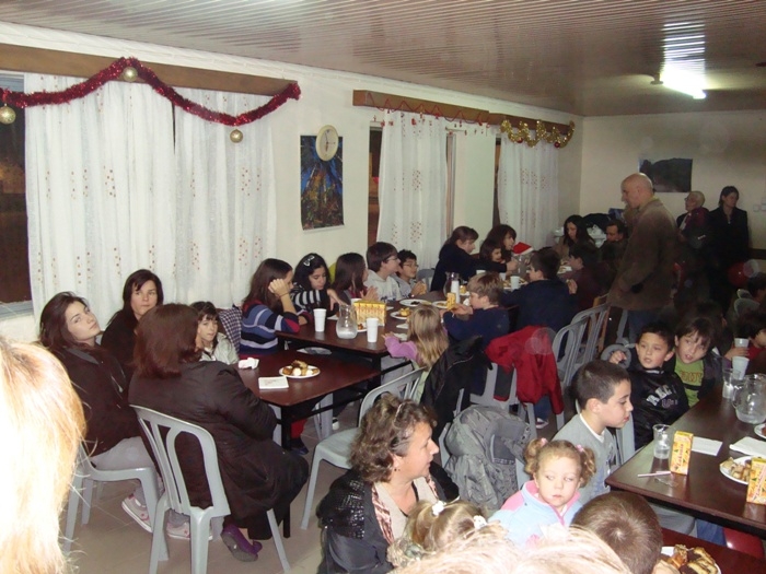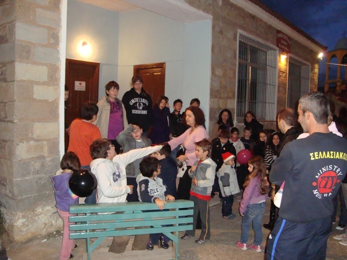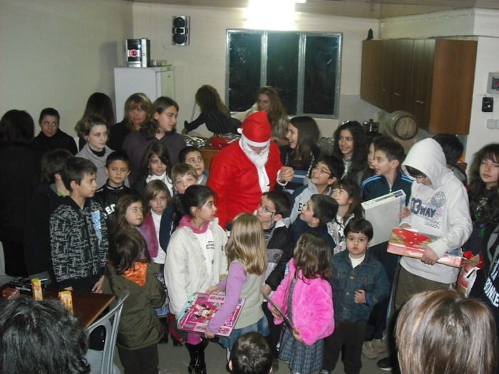 Σε ένα χωριό που γέμισε ξανά από πολλές παιδικές φωνές και παιχνίδια δεν ήταν φυσικό να λείπει ο Άη-Βασίλης, που ξετρυπώνοντας από κάποια γειτονική καμινάδα μπήκε στο χώρο της γιορτής και μοίρασε δώρα στα παιδιά. Κατά τη διάρκεια της γιορτής τα παιδιά φωτογραφήθηκαν με τον Άη-Βασίλη, αλλά και σε ένα ιστορικό στιγμιότυπο όλα μαζί στον προθάλαμο του Δημοτικού Σχολείου.