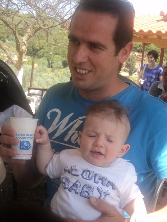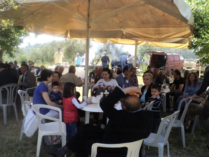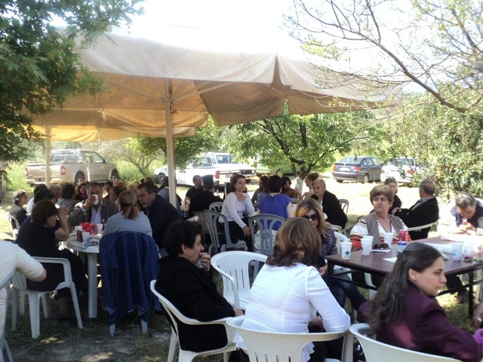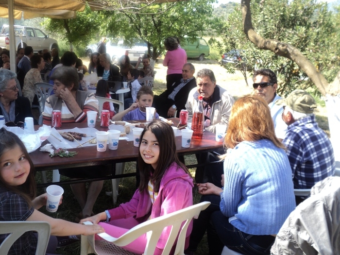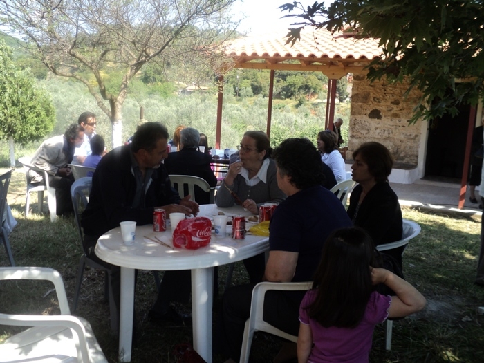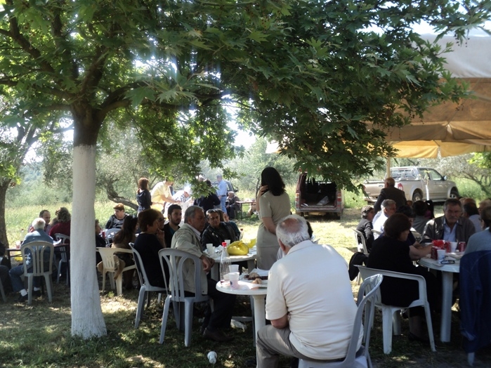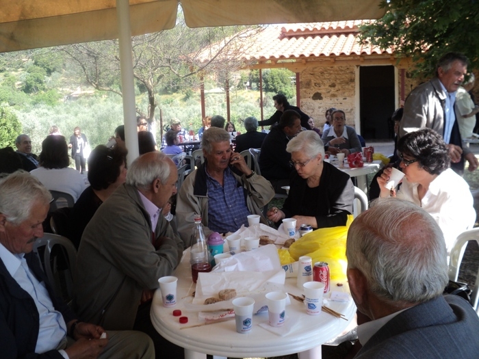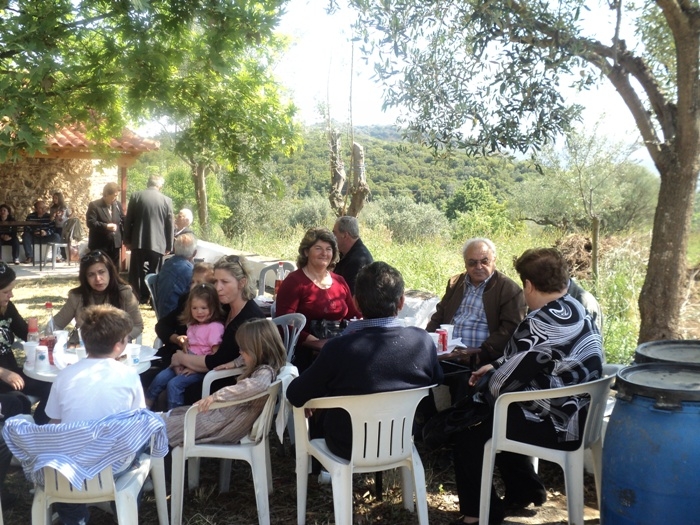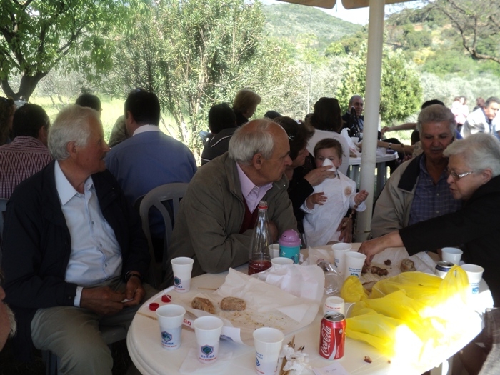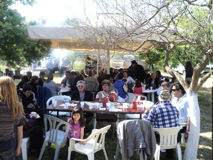 Σε ένα όμορφο ανοιξιάτικο τοπίο, ο Πολιτιστικός Σύλλογος Καραβά μετά τη Θεία Λειτουργία έψησε σουβλάκια και προσέφερε κρασί σε όσους βρέθηκαν στον προαύλιο χώρο του ναού.